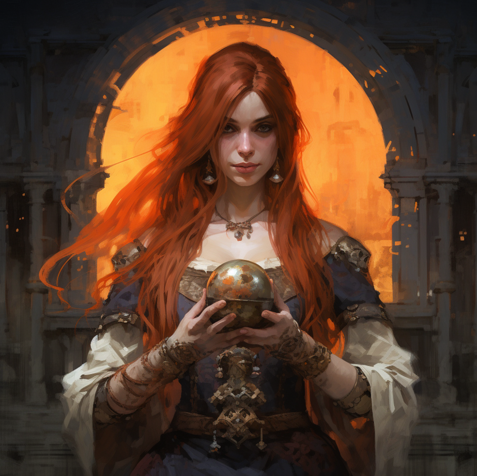 Phora ‘Aurora’ Hesperlin is a human female of about 40 cycles. She is not a real fortune teller, and she is honest about the fact with her clients. They travel far to speak with her anyway, and pay her well for her council which is always insightful… if not magic. She settled in Harlingwell just a few cycles ago because she wanted to be closer with her sister Lanina and her family. There is more to the story of her sudden relocation however… and she dare not return to Kovasuvu anytime soon… unless she wants to spend the rest of her life on a exiles isle, where her former cohort in confidence crimes surely is today. Phora got away… and with the greatest haul imaginable. She is the sole possessor, as far as she knows, of the key to a sky palace, one abandoned hundreds of years ago. The wealth contained therein is more than she has ever explored. She keeps here wealth a secret, but since she arrived in Harlingwell no one has gone hungry and many nee buildings have been built – funded by an ‘anonymous donor’. The ‘key’ to the sky palace (once known as Miranor) is an enchanted brass sphere, which she passes off as her ‘crystal ball’, and which never leaves her person.
