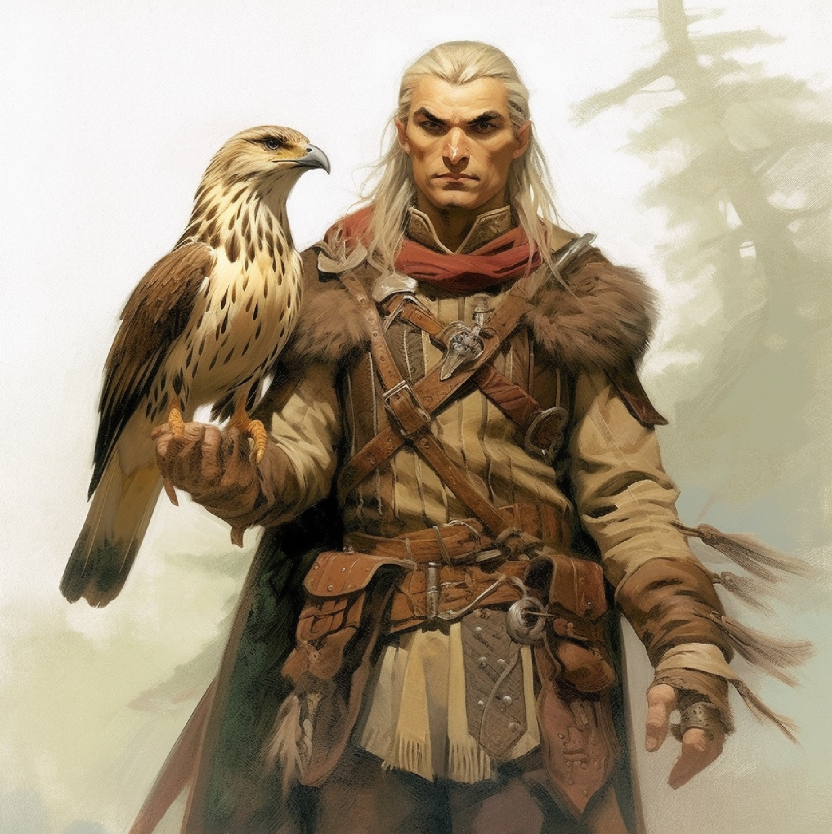 Syrinx is a male elf who has almost reached adulthood, by elf standards. He is originally from a land far away… the name of which he has forgotten, along with the names of all his friends and family, yet he remembers their faces and feelings he had for them. Syrinx is a Falconer and also runs a messenger service in Harlingwell with his growing kit of homing pidgeons. While very few of full elven blood live outside the gates of Alanalor, Syrinx settled here in Harlingwell because it most reminded him of his former home. He used to dream of returning home, or at least discovering how he ended up here. All he remembers is hunting with Rosefire one moment, and then the next he awoke in what seemed an entirely different world. Thankfully Rosefire was there sitting on his chest when he opened his eyes.